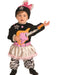 • Unleash your baby's inner rockstar with this 80S Baby Girl Costume! This eye-catching ensemble includes a dress with a cool guitar design and a stylish black and pink hat. Watch your little one steal the show and be the life of the party. Let the music play and let your baby shine!