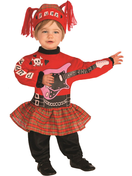 • Dress your little one in punk style with our Punk Baby Girl Costume. This adorable outfit includes a red dress with a guitar design and a matching punk hat. Perfect for Halloween or any punk-themed event, your baby will be the highlight of the show.
