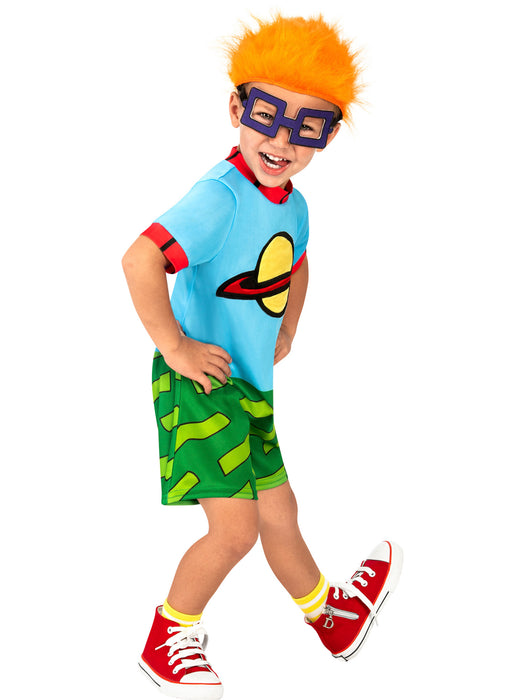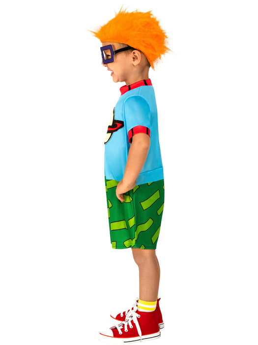 • Your little tyke will bring to life the cutest little cartoon character to grace the silver screen, Chuckie Finster! He might be a pessimist and easily scared but he is loyal and will always face his fears to help his friends. This Baby/Toddler Rugrats Chuckie Costume comes with a one-piece that has Chuckies green shorts printed on the bottom and blue top printed with a planet. Also included is an orange fuzzy headpiece that resembles his bright hair and attached purple square glasses.