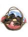 • A Plastic Basket With Rope Handle, Attached Red And White Checkered Napkin, And A Soft Plastic Wolf Head With A Blue And White Checkered Bonnet. Basket May Vary Slightly From Shown.