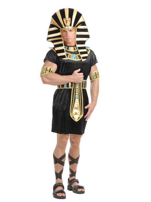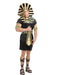 Rule over the entire Egyptian empire in our Black and Turquoise King Tut Costume. King Tut was the youngest pharaoh, he was put in charge as a child and served the role until his death while just a teenager. However, he has become a legend since those ancient times. King Tut has been immortalized in various literature, films, and more both as a fictional character and non-fiction person. You receive a everything needed to give yourself such a royal appearance. Arm bands, collar piece and sashes are depicted with printed images of jewels and have a golden trim. Top it off with the headpiece designed to look like an Egyptian Head Crown complete with attached snake charm. Turn into the young ruler with this King Tut costume. It is simple and easy to wear which makes it perfect for various events. Attend Halloween parties, put on theatrical performances, or historical recreations all using this handy outfit.