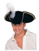 • You'll have a swashbuckling good time this Halloween when you wear the Black Buccaneer Tricorn Hat Adult! The black hat has an upturned rim with golden trim. White plumage sticks out from the top of the hat. This is a great addition to any pirate costume.