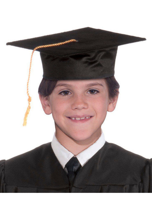 • Graduating from school always calls for a bit of celebration. And this child-sized grad hat is just what you need to make your little learner feel super special! This Black Graduation Cap has a classic squared design at the top and a black tassel that's securely attached. With its elastic closer at the bottom, this Black Graduation Cap is a guaranteed fit for guaranteed success!