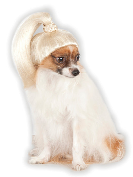 • Your pup will be looking like a beautiful Barbie doll this year when you dress them up with our Blonde Pony Tail Pet Headpiece. With this one, you will receive just the wig your doggy needs to strut around town knowing they're the cutest thing on the block. Featuring a gorgeous blonde ponytail that will sit right atop your pup's head with ease, you definitely don't want to miss out on this special look this year.