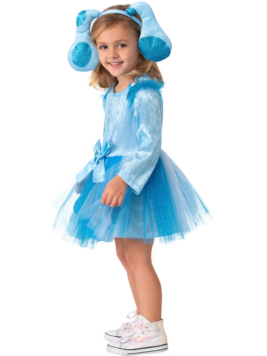 • Your daughter doesn't have to dress up in a full doggy detective costume to make her next special event into a celebration of her favorite show, Blue's Clues! Our Blue's Clues Girls Blue Tutu Dress is just what your daughter needs for a more casual hang with her friends. Whether they're looking for clues or just watching their favorite kid's show, they're going to feel like they have their favorite character right there with them.