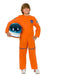 • This year, make a Halloween celebration that is out of this world. The Boys Astronaut Suit Costume features an orange jumpsuit that is inspired by an astronauts uniform. Let your child use his imagine to soar into space to the outer reaches of the galaxy and beyond.