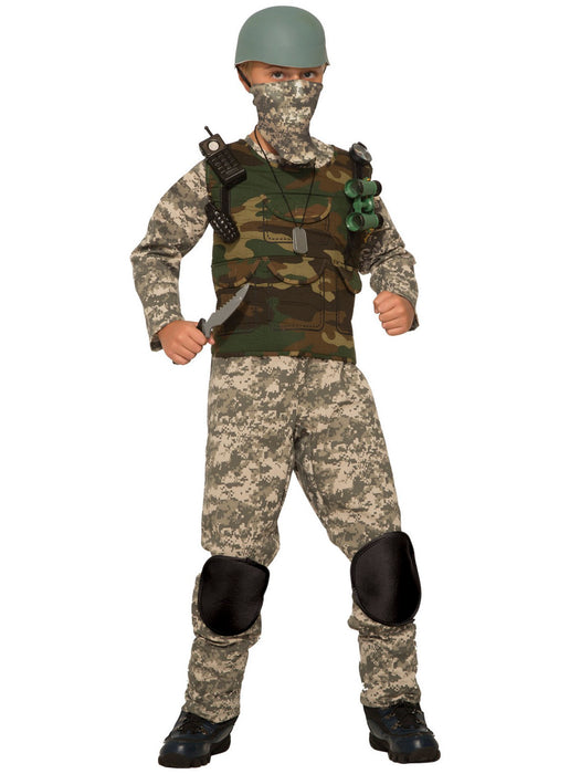 Let them take the field this Halloween with our Boys? Frontline Trooper Costume! There?s a battle that needs good soldiers to win, and with our stellar costume and your child?s enthusiasm, it looks like victory is assured! This fun tactical design features everything they could want to become a fearless soldier this season. Pair up this action packed camo costume with any number of prop weapons to make sure your little trooper has all the equipment he needs for a successful mission. Any number of prop guns and knives will complete this outfit and get your kid playing! You might even see this classic design out in the house outside of season, so get ready for an ambush at any time. This fun and comfortable design is the perfect way to give your child the tactical advantage they?ve always wanted and turn them into the action packed heroes they?ve always wanted to be. So sign them up for a fantastic season with our Boys? Frontline Trooper Costume and prepare to fight!