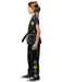 • Let your child step into the dojo and embody the legendary Johnny Lawrence with the Boys' Karate Kid Classic Cobra Kai Johnny Lawrence Costume! Inspired by the iconic 1984 film, this officially licensed costume recreates the fierce and fearless look of the Cobra Kai's top student. Featuring a black karate-style gi top and matching pants, with a black headband and belt, just like the ones worn by the Cobra Kai fighters. Whether they're trick-or-treating, reenacting scenes from The Karate Kid, or sparring with friends, this costume is a must-have for young martial arts fans. Order now and bring out your inner ninja.