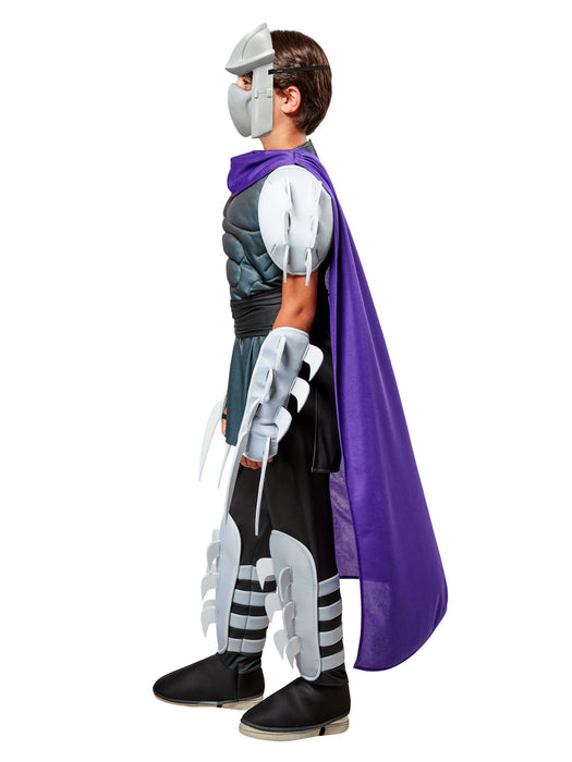 • If your kid is a huge TMNT fan, then you know they're going to want to dress up as their favorite villain this year. When you pick up our Boys' Teenage Mutant Ninja Turtles Retro Shredder Costume- Deluxe, your kid will be smashing through turtles along with all his evil cronies. With this set, you will receive everything your child needs to send Splinter, Leonardo, Donatello, and the rest of the gang running. Featuring a padded black top with silver shoulder armor and a detachable purple cape, along with a pair of black pants with shin guards and shoe covers, as well as a pair of gauntlets, a black belt, and the classic Shredder mask, your tyke will love this overpowered look.