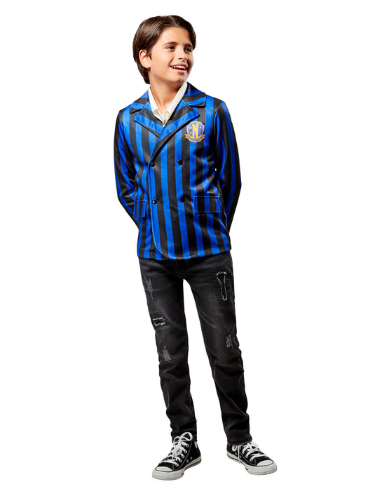 If your tyke dreams of attending Nevermore Academy, then they'll feel right at home when they put on our Boys' Wednesday Nevermore Academy Uniform Jacket. Whether your child is more of a werewolf, a vampire, a psychic, a gorgon, a shapeshifter, or any other outcast creature, they will feel like they finally belong when they're surrounded by all kinds of beasts and sorcerers at Nevermore Academy. Finally your kid will find school truly fun and engaging when learning all about these magical entities.