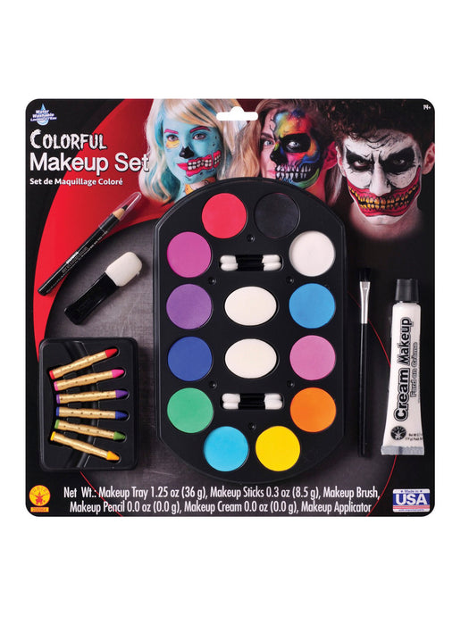 • You can use this Bright Colors Value Make-Up Kit to get the most rainbow-gorgeous make up job on the block this Halloween! No matter what colorful character youre planning to dress up as on Halloween this year, you can get their look down perfectly when you have all the eye-catching options available to you from this make-up kit. Youll love doing your make-up before you go out on Halloween with these quality colors at your disposal!