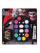 • Components: 6 Makeup Sticks (Red, Pink, Purple, Blue, Green, Yellow), 12-Palette Grease Makeup Tray (Black, White, Turquoise, Pink, Orange, Yellow, Lime, Green, Dark Blue, Purple, Hot Pink, Red). White Cream Makeup, Black Makeup Pencil, 2 Applicator Brushes