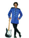 • You will look so much like one of the Beatles in British Explosion Blue Adult costume, you are going to be asked by your friends to perform their songs all night long--even if you are not a good singer! The outfit comes with a blue faux leather jacket with black trim and black buttons going all the way down the front to clasp the coat shut. There is light blue lace around the buttons, on the sleeves, and detailing the shoulder pads of the jacket. The shoulder pads are also garnished with dangling black fringe. You'll absolutely love this costume if you're a huge Beatles fan, so hurry up and buy yours today! Your outfit won't be complete without a 60s style wig, round glasses, or a microphone, so make sure you purchase those separately from our website to complete this groovy British-inspired look!