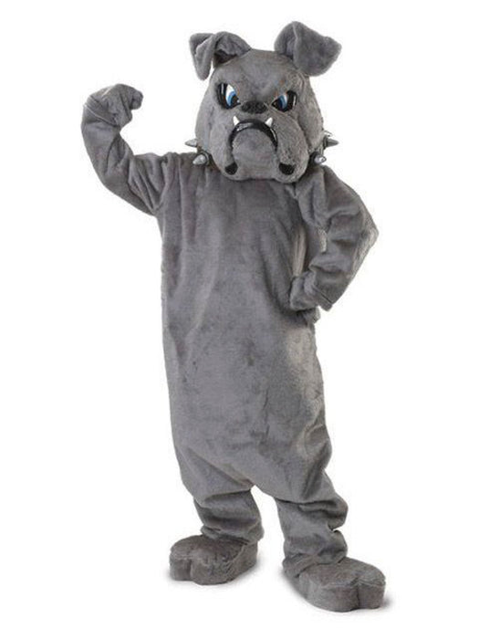 • Has Tom been getting a little rough? Give Jerry a hand when you put on this Bull Dog Mascot Costume! Covered in plush gray fur, this full body suit has a hidden enclosure, long sleeves, and baggy pants. Soft mittens and parade feet paws make it easy to chase after the neighborhood tabby. The tough-looking head is the star of the costume, its bottom lined with a spiked collar. Your big blue eyes and toothy grin are turned down in a snarl to make you scarier than any junkyard dog! The folded ears add to your rough-and-tumble look. Pop it on and go show the opposing team why they've got you chained up most of the time. Order your Bull Dog Mascot Costume with Kold Packs and a Kold Kollar so you don't start panting all over the place.