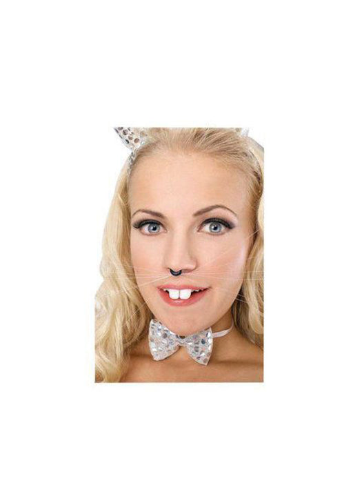 • Hop on down the bunny trail wearing these Bunny Rabbit Teeth! Whether you're going for cute or sexy, this piece will make your cotton-tailed costume look more authentic. These enlarged two front teeth can be affixed right in front of your natural ones!