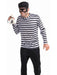 • Make off with all the candy at the party wearing a costume that theyll never see you coming in. The Burglar Adult Costume is a criminal-themed look that is perfect for sneaking out unseen and without your identity being compromised. This product comes with a black and white striped shirt, with an eye mask and black hat for a top-to-bottom ensemble that will have your fellow crooks following your lead. This product also includes a small money bag accessory thats perfect for making off with your loot.