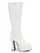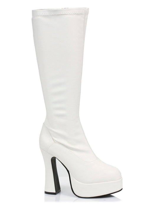• Go dancing this Halloween in our Adult Chacha Boots White! You can be a Go-Go dancer or just another nightclub patron when you're wearing these eye-catching white boots. These boots are sturdy enough to withstand a night's worth of energetic dancing, so don't be afraid to get out there and shake it to the Cha-Cha!