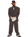 Look like the picture-perfect respectable leader of organized crime from the 1920s in this Chicago XL Mobster Costume. Featuring the classic pinstriped suit with wide lapel, this two-piece getup will earn you respect at any costume party you attend. And, if it doesn't, you know how to take care of them. That's right?extortion was the name of the game of these hard-hitting gangsters. Pair your suit with a dark-colored shirt and snazzy tie, then throw on a fedora and don a handkerchief in your pocket for that extra-elegant look. After all, you want everyone to know you mean business. Make sure you adopt that tough guy smirk on your face all evening to be taken seriously. Flash your wads of cash or tommy gun (fake of course) to intimidate. And lastly, chew on a cigar to complete the authenticity of your ensemble. This will be one outfit you'll feel really powerful and comfortable in. Just watch out for rival gangs.