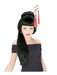 • Take a trip halfway around the world without ever leaving the neighborhood with the China Girl Geisha Wig Adult! The wig is composed of long, straight black hair with short bangs across the forehead. The bun on the top of the head has red tassels and other beaded decorations hanging from it.