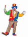 Clown around all night this Halloween when you wear the Clown On The Town Adult costume! The outfit comes with a jacket that is red on one side and blue on the other. The jacket clasps shut with two yellow buttons. The pocket flaps and sleeves are green and yellow, and the sleeve cuffs feature a multi-colored plaid design. The top of the jacket is designed to look like a white shirt and yellow vest peeking out. There is colorful plaid trim on the vest. The costume also includes pants, which are designed with the same red, blue, yellow, green, and white pattern. The bottom of each pant leg has red and blue panels. The bow tie matches the pants. The hat, which is red with a blue rim and features a yellow and green flower on the front, really adds a finishing touch to the costume. Purchase a pair of clown shoes, a clown nose, and a clown makeup kit, each sold here separately, to complete your look.