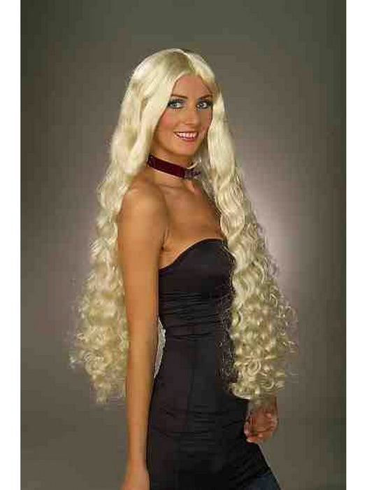 • Hubba hubba! Introducing the Curly Blonde Mesmerelda Adult Wig. The wig is a long curly synthetic blonde wig. Great for any party. Can be accessorized with jewelry, dress, or even gothic attire. So, don't waste another second. You have to purchase this awesome prop today to be the gorgeous Mesmerelda .