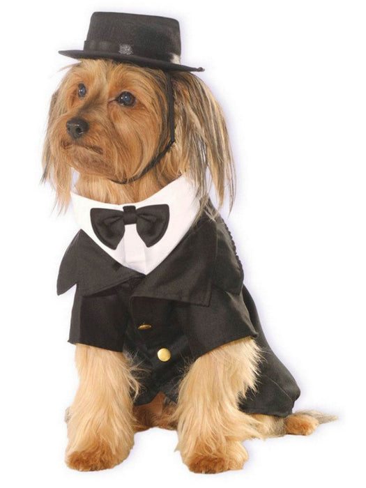 • Make your pet the top dog of absolutely any soiree when you put them in this Dapper Dog costume! Including tuxedo jacket bow tie and hat, your dog will be Puttin on the Ritz and posing for pictures all night long! Perfect for Halloween or any other occasion year round! Made of high-quality polyester! Add a faux diamond studded leash to really turn on your puppy's glam! Check out our super fun, full selection of pet costumes and beat the Halloween Rush when you order your Dapper Dog costume online today!