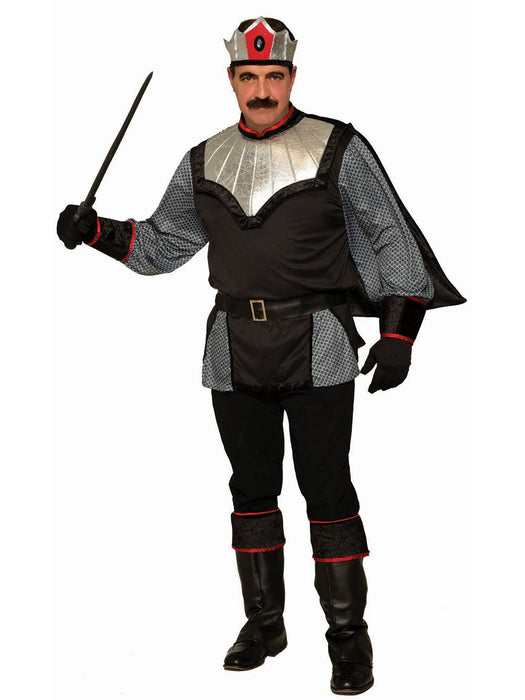 • You can rule a kingdom of shadows this Halloween as an evil monarch in this Dark King Plus Costume! This costume comes with a cape and robes, as well as a sinister looking crown to let all your subjects know whos boss. No matter what dark monarch is inspiring you this Halloween you can step into his shoes using this elegantly evil shadow king costume. Youre sure to rule the night when you wear this Dark King Plus Costume!