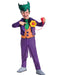 If you're a mischievous prankster, then this DC Comics - The Joker Deluxe Child Costume is for you. Costume includes jumpsuit with attched jacket and shoe covers, faux hair headpiece and squirting flower. This is an officially licensed DC Comics costume.
