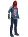 There will be no need for a cape wearing this Muscle Chest Red Hood Adult Costume. Constructed of mostly polyester materials, this costume recreates the character from DC Comics and includes one muscle top with attached clothing of a muscle chest, cape, half mask, attached boot covers, and molded belt. The muscle top features graphic muscle shirt with red Batman symbol on chest, attached jacket with graphic pockets and detailing, and attached red hood. This hoodie is made of 100% lightweight polyester sweatshirt material and has a masked hood attached. The zipper attaches from the headline to the top of the masked hood so you can zip it all the way over your face. The hood has eye holes as well as holes near the mouth for easy breathing. Use your skills for good or bad with this costume and remember to enjoy keeping your true identity a total secret!