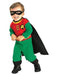 Most little boys want to grow up to be Batman, but you have a different plan. Put on a DC Comics Robin TM Infant Costume and train for your future as Nightwing! This outfit is sewn from soft fleece, the long sleeves and pant legs keeping you cozy as you play in the Batcave. The bright red top is marked with Robin's logo alongside three yellow buttons. The utility belt patch around your waist will help you take care of anything that comes your way. Elastic at the cuffs of the green sleeves and pants stop your suit from bunching up as you're trailing Bruce. Slip away into the night and your black cape will billow after you, helping you melt into the shadows. Hide your identity with the fabric mask and go kick some butt! You have one heck of an adventure in front of you. Get into a Robin TM Infant Costume and go join the fun! Your family can dress up as any of our Batman heroes and villains for a coordinated group.