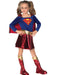 • Comic book characters always wear bright super hero suits with eye catching designs. The Supergirl Children's Costume is a super hero themed outfit that provides you with a fun outfit as a character everyone will recognize and love. Superman is the best of all super heroes and this red, yellow, and blue dress shows his classic look. This dress features a blue, long sleeved top featuring Superman's 'S' logo in yellow and red on the front and a shimmery red skirt. The costume also features an attached wide shiny gold belt, red flowing cape, and a set of boot covers. This costume can be worn several times throughout the year and will quickly become your daughter's favorite outfit. Can't think of a costume idea? Superman can come save the day, just order yours today!