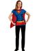 • This is one t-shirt that's perfect for showing off your super physique. The Women's Supergirl T-Shirt with Cape Adult Costume features a blue t-shirt with a red cape. The front of the t-shirt is printed to look just like Supergirl's signature uniform. It features her curvy figure and chiseled abs. The chest has the iconic red S against the yellow background. The bottom of the t-shirt is printed with her yellow belt and the start of her red bottoms. You'll fly through any party with the attached red cape. Although this is just a t-shirt, you'll look just like the iconic superhero. This is perfect for a simple Halloween costume or a comfortable look at any comic book convention. You'll look undeniably like this Kryptonian when you don this Supergirl T-Shirt with Cape Adult Costume to any event this year!