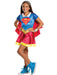 • Supergirl is flying into your house this Halloween. This costume is a blue, pink, and yellow jumpsuit. The top of the jumpsuit is blue with the pink and yellow S in the center of the top. The bottom of the jumpsuit looks like a pink and yellow skirt and also comes with a yellow belt across the waist. Ensemble comes with a white headband. Cape not included. Supergirl has super strength, the ability to fly, heat vision, x-ray vision, ice breath, and super intelligence. Supergirl helps Superman fight off some of DC's most powerful villains like Lex Luthor, Brainiac, and Bizarro. Your daughter will feel like she can do anything in this special Supergirl costume. Supergirl was featured in the animated series: Justice League: Unlimited and is portrayed by Melissa Benoist in her own live action show, Supergirl.