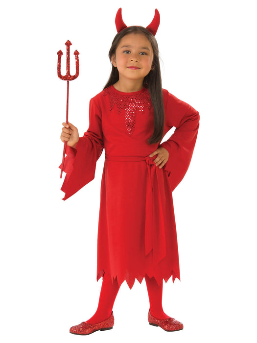 • Angels are beautiful and all, but devils have a whole lot more fun! Or so the saying goes... This Halloween, let out your dark and devious side when you buy the Devil Costume for Girls. Nothing says spooky and scary on Halloween than the Devil herself! With your purchase, you'll receive everything you need to turn into a fiery red demon, ready to cause mischief and have all kinds of fun on the spookiest night of the year. Team up with all of your other mischievous friends, and you can wreak havoc in style as a group. Trick or treat as a whole team of creatures and beasts, and everybody will be cowering in fear. If you see any angels this Halloween while wearing this red and stylish get-up, you'll be sure to send a shiver down their spine. Pick up your Devil Costume for Girls today, and this Halloween, have the time of your life!