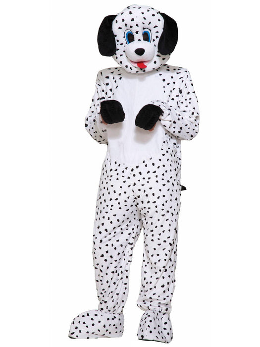 • It can be ruff trying to find the perfect mascot outfit, but we can help. The Dotty the Dalmatian Mascot Costume includes a white jumpsuit with black spots, attached black mitts, headpiece and spotted shoe covers. The headpiece covers the entire head and features black floppy ears, eyes, nose, open mouth with tongue and, of course, black spots. The eyes have see-through openings. There are 101 reasons to wear this versatile outfit. Cheer on your team during your school's sporting event or entertain children at a birthday party. Wear this to a Halloween party. Browse through our entire animal garb selections for adults and children and buy matching outfits for your entire family. A full body costume can get hot so you should also purchase a Kold collar or vest to keep you cool.