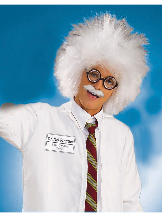 • Your mad scientist look is going to be complete when you put on our Dr. Mel Adult Practice Wig! The fluffy white hair on this wig is great for anyone whos looking to bring a monster to life this Halloween. You can also play a rather eccentric doctor with this white wig, so if youre just keeping your patients healthy with all their regular body parts still attached you can still have some fun with this accessory!