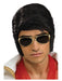 • Your Elvis Presley costume needs some flawless hair if you want to be convincing, so buy the Elvis Deluxe Wig! The wig is composed of black hair that is slick and shiny. The large sideburns featured on each side of the head finishes off this look.
