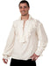 • Add some buccaneer style to yer wardrobe with the Men's Ecru Pirate Shirt. This long sleeve shirt features a ruffle front with crisscross lacing detail. The ruffle sleeves feature tie accents. To create your own pirate look, wear this with a black vest, black pants, boots and a bandana tied around your head. Accent it with a sword, eye patch and pirate hat. Or you can wear it with one of our many pirate costumes available from us at a low price. This can also be part of a men's medieval or renaissance outfit. In the 17th and 18th centuries, ruffled shirts were a common style worn by men, so this would work with any costumes inspired by those time periods. This is also a fun selection if you want to dress as the performer Meatloaf for Halloween.