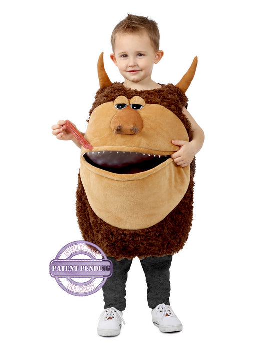 • Allow your son to take a walk on the wild side this Halloween with our Feed Me Boy's Wild Man Costume. It is a shaggy haired bodysuit that is well prepared to take on the ravages of the night. The wild man's face is displayed across your son's torso, but the real treat is where he stashes them. The Feed Me Boy's Wild Man Costume's mouth acts as a trick-or-treat bag so you don't have to heft around a sack full of sweets all night!