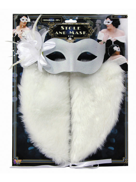 • Before you head out to the costume party at Jay Gatsby's mansion, you're going to need our stunning Flapper Stole And Mask Set to make your new roaring 20's period costume into a real period COSTUME! With this comfy stole, you can stay warm when the winds blow on West Egg, and the mask will keep your identity a tantalizing secret for anyone who falls in love with you at the party to guess at.