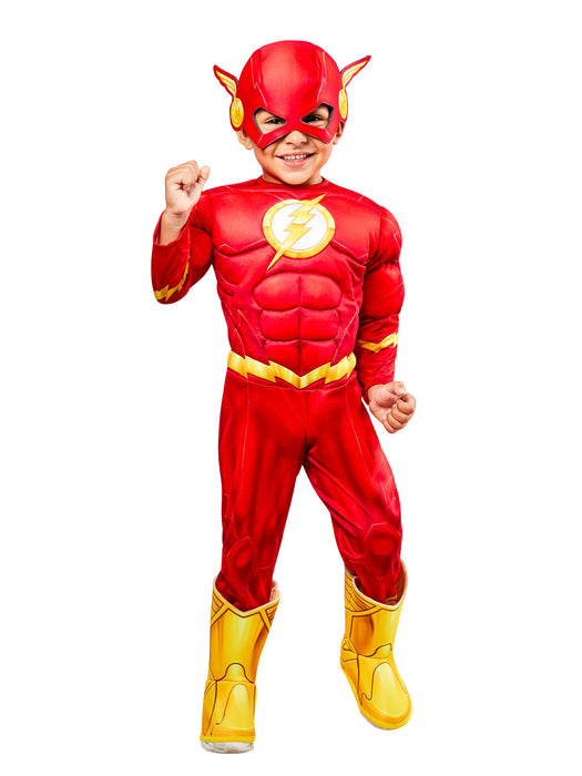 • Your tiny tot will be the cutest little speed demon in town this year when you dress them up with our Flash Costume Set for Toddlers. With this adorable heroic set, you will receive everything your little guy or gal needs to cruise around at the speed of light and steal all the goodies and snacks you've been hiding from them. Featuring a fun red and yellow Flash jumpsuit with shoe covers and a matching mask, your tot is going to have the time of their life in this powerful wear.