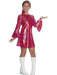 With this costume's fuchsia colors gracing it, it's the perfect costume for any disco party , event, or dance party in general. Not too bright, but also not doo dark. Introducing the Fuchsia Swirl Disco Diva Costume for Girls. The costume's pattern and colors certainly ring back to the time period when disco was alive, and was one of the hottest, if not the hottest things ever. But now that many years have passed since, disco is not as popular as it used to be. But why not revive the good old times and dress as a funky disco diva for the dance party. Learn some classic disco moves that will go very well with this costume and impress others by giving them a show. Hit that music and play some of the greatest disco songs from the past, as you dance to them all night long. With so much excitement in the air, you are the life of the party in a costume like this!