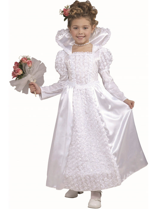 • Dress your little princess in our stunning Girls' Bride Princess Costume! This sheen white dress features a high collar and delicate flower designs, making her feel like a true bride. Perfect for dress-up, Halloween, or any special occasion. Give her the royal treatment she deserves!