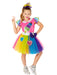 With this dazzling XOMG POP! ice cream costume, you will receive everything your little angel needs to hit the stage and belt her little heart out. Featuring an absolutely dazzling and unique dress with a pink top and rainbow sleeves, a sparkly rainbow skirt, and magical ice cream and heart decals that sparkle with each one of your daughter's dance moves, it doesn't get any better than this. Along with the dress, you will also receive a matching purple and gold headpiece that will complete the look. A costume that is flashy, fun, and dynamic, you definitely do not want to miss out on this one.