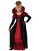 • The only way to have more fun than a vampire this Halloween is by being the ruler of all the vampires. Your child can bring all the vampires in town under her command when she wears this Vampiress Queen costume for girls! Even Count von Count and Dracula himself can't say no when the Vampiress Queen gives them an order. This costume includes a red and black grown that will have her ready for some blood sucking fun! It features a layered skirt with a sheer fringed overskirt in front and black laces criss crossing across the bodice. It also features a high red collar. Make sure you check out our selection of vampire accessories like masks, fangs, and makeup to fully transform her into a Vampiress Queen!