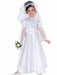• Mom and dad might want you to wait a few years before you walk down the aisle, but you can start planning your big day dressed in this Girl's Wedding Belle Costume! This beautiful bridal outfit includes a long white dress and a veil. The elegant gown has dainty puffed sleeves with sheer organza overlays and criss-crossing lace accents on the bodice. The floor length skirt features a sheer overlay to add extra glamour and romance to this feminine ensemble. The coordinating veil features ribbon accents that frame your face. This outfit is perfect for playing dress-up, and you could also wear it for Halloween. There's a lot of work that goes into planning a wedding, but you don't have to worry about seating arrangements and caterers just yet. Stage your dream wedding without any of the stress wearing this Girl's Wedding Belle Costume!