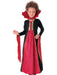 • Uncle Alucard just invited you to his castle. Make sure you get a Gothic Vampiress Child Costume so you can look good for the visit! This floor-length gown is made out of black polyester, giving it a creepy edge. A blood-red panel running down the center adds some devilish charm to the look, its crushed velvet body shining in the moonlight. The draping cuffs attached to the long sleeves are sewn from the same material. A functioning lace up the gold-trimmed center of the dress will let you tighten the outfit while adding gorgeous folds to the skirt. The foam neckpiece can be worn up as a collar or down as a cape. Lace it on and you're sure to impress all of your family back in Transylvania! Add black shoes, vampire teeth, and gloves to your Gothic Vampiress Child Costume and you'll be the classiest creature around.