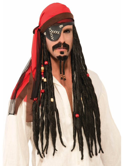 • Walk into the party wearing the Headscarf with Dreads Wig, and you'll be sailing the stormy seas with your crew in no time. With your purchase, you will receive a bright red headscarf with attached brown dreads featuring colorful red and yellow beads. Pair this stylish wig with the rest of your scallywag or buccaneer costume and you'll be hunting down ancient treasures in no time. Buy your pirate wig and dreads today and go make this Halloween a true treasure worth stealing!