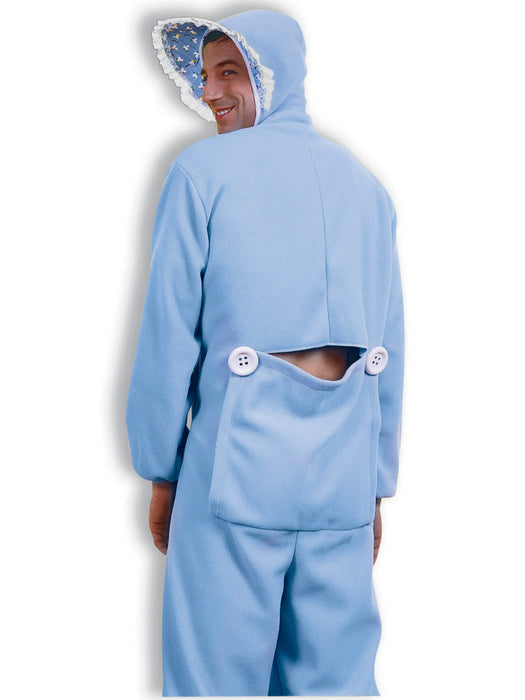 • Wah-wah! Baby wants his bottle. Make sure everyone knows you need to be cared for with the Jammies Adult Blue Costume. This is a great outfit for anyone with a mischievous sense of humor looking to liven up the proceedings this Halloween season. This outfit features a baby blue colored jumpsuit with attached hood, and a rear button flap that dangles just enough to show off your posterior. It?s a great tease that?s in line with the tongue in cheek nature of this costume. This is an outfit that?s easy to accessorize with and offers plenty of options for creative types who like to really put extra thought into your costumes. A bottle and pacifier are just two examples of simple additions that can really enhance this costume. Prepare to be babied in a hilarious child themed outfit that will leave you looking like? well, a real crybaby.