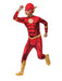 All the way from Central City comes the Justice League Flash DC Comics Costume for all of your superhero needs this Halloween season. Dress up as the Fastest Man Alive this year with an officially licensed costume that's straight out of a comic book. Featuring his iconic red and golden garb you'll feel just like the Flash in this action-packed outfit. It includes a stylish red jumpsuit with attached boot tops featuring muscle texturing and details accurate to the comics, like his lightning bolt belt and forearm bands, along with the unmistakable Flash chest emblem. This product also includes a character headpiece modeled after Barry Allen's iconic helmet, with attached golden wingtips on either side of the mask. It's perfect for concealing your secret identity and best of all, it looks cool! Stop the Rogues this Halloween with a costume that'll really make people believe you can run faster than the speed of light.